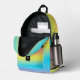 Un diseño de arcoíris de color azul giratorio, rosa, naranja, verde azulado, azul, violeta, verde y turquesa. Un diseño de mochila monocasco para chicas que adoran los colores arcoiris.