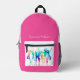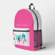 añada el nombre de sus hijos a esta elegante mochila rosa con bailarinas coloridas sobre fondo blanco en el bolsillo, diseño divertido ideal para viajes escolares o clases de baile. nunca pierda su bolsa para niños de nuevo. si necesita ayuda con este diseño, por favor contáctame a janine a través de mi zazzle store message buttong , sauow spring studio y estaré encantado de ayudar.