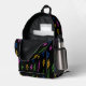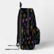 Los años ochenta inspiraron un patrón retro con coloridos ilustraciones de neón 80 sobre un fondo negro. Diseño de mochilas perfecto para quien ame los diseños nostálgicos de los años 80, ilustraciones de formas coloridas y patrones de neón vintage.