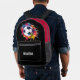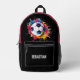 Añade tu nombre infantil o iniciales a esta divertida mochila con una pelota de fútbol con pinturas coloridas, todo sobre un fondo negro. Si necesitas ayuda con este diseño, por favor contacta conmigo janine a través de mi zazzle store botón de mensaje willow estudio de primavera y estará encantado de ayudarte.