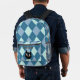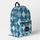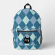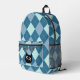 Mochila cúpula con un patrón de argyle azul vintage. Una plantilla para agregar su nombre u otro texto y un dibujo de un gato negro. La imagen del gato es también una plantilla para usar como es (si te gustan los gatos), reemplazar por tu propia imagen o borrar para dejar en blanco.
