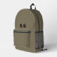 Una mochila de estilo militar en el marrón verde del ejército con un monograma personalizado inicial en una tipografía de estilo de esténcil utilitario en negro. El regalo o accesorio perfecto para cualquier soldado o personal militar.