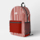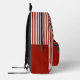 Mochila impresa de rayas rojas oscuras monogramadas y modernas