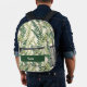 Los elegantes frentes de helecho en verde claro y oscuro, en un fondo blanco roto, hacen una mochila elegante y femenina. Perfecto para la escuela o el senderismo.