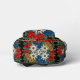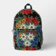 Una imagen de un patrón floral con un aspecto de costura de las flores blancas alpinas de Edelweiss de Europa en su producto. Azul, rojo, amarillo y blanco. Leontopodium alpinum de Suiza, Alemania y Austria.