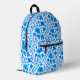 Mochila Impresa Floral botánica en azul profundo y blanco