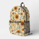 Bonita mochila de diseño de girasol amarillo. El diseño presenta un patrón impecable de acuarelas florales de girasoles dorados amarillos y follaje verde azul. Sólo hay que añadir iniciales para un regalo monogramado para hacer una mochila divertida para los estudiantes que vuelven a la escuela. También es ideal para bodas y Bachelorette / cuando fiestas eventos.