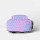 Este patrón colorido brillante presenta flores de círculo geométrico rosa, lila y azul celeste sobre un fondo lila.