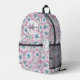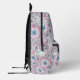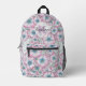 Esta vibrante mochila presenta un cautivador patrón floral que ocupa el centro del escenario. El diseño muestra grandes flores rosas con delicados follajes azules y verdes, creando un aspecto llamativo e intrincado. La forma clásica de la mochila incluye un amplio compartimento principal y un pequeño bolsillo delantero, ambos cubiertos por cremallera. Por un lado, encontrarás un bolsillo de malla, perfecto para guardar una botella de agua o pequeños artículos esenciales. Lo que distingue a esta mochila es el toque personalizado: la parte frontal superior permite el texto personalizado. Actualmente, muestra este nombre de forma elegante con letra cursiva, pero los clientes pueden personalizar fácilmente este texto a su gusto. Ya sea que desee agregar su propio nombre, una cita favorita o un mensaje especial, esta característica hace que la mochila sea única suya.