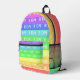 This backpack features bold, colorful stripes in every shade of the rainbow, paired with a customizable typography pattern ideal for monograms or personal flair. Full of charm and personality, it’s a unique and cheerful gift for rainbow lovers. Perfect for kids to take to school, bring to the gym, or use on fun adventures, it’s a practical yet playful accessory that’s sure to stand out anywhere.