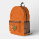 A funny capybara with a positive message on a colorful backpack. Use "Personalize this template" to change the "Don't worry, be cappy!" text and create a unique, customized item. A chilled out yet motivational accessory featuring a cute capybara doing a graceful hoop routine in the rhythmic gymnastics, on a sunny orange background with a subtle floral print. Spread the positivity!