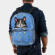 Esta divertida mochila de novedad incluye una apariencia falsa (impresa) de denim / jean azul con un gato personalizado de chinche de esmoquin negro y blanco que parece estar sentado dentro del bolsillo delantero! El diseño también incluye siluetas de huellas de pata y una silueta de gato/pájaro por un lado. Utilice la plantilla sencilla para agregar su nombre o el nombre de su gato al diseño (o simplemente elimine el nombre de ejemplo "Tabitha" para pedir sin nombre). ¡Estas lindas mochilas hacen el regalo perfecto para cualquier dueño de un gato! También serían divertidos para un animal groomer o veterinario. Encontrar más colores de gato y también encontrar este diseño en otros productos de la tienda aquí: https://www.zazzle.com/store/laborandleisure
