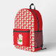 Esta impresionante mochila presenta una imagen de diseño gráfico de un afortunado gato oriental blanco ondulado. El gato tiene hermosos ojos de oro y lleva puesto un medallón de oro en el cuello. El gato tiene orejas y bigotes rosas. Este lindo gatito sostiene una ficha de oro con entrada de jade verde y un mensaje en texto dorado que dice "Buena suerte".