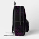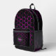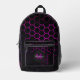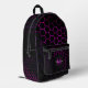 Monograma Mochila impresa de neón negro de color rosa rosado en neón. Personaliza con tu nombre inicial. Bolsas de colegio únicas para chicas. Patrón gráfico de líneas hexágonas geométricas elegantes brillantes y brillantes de neón rosa caliente. Accesorios de diseño gris, negro y rosa de Guay para damas audaces.