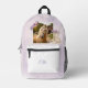 This girls purple and pink floral horse personalized photo and name backpack lets you add a picture of your horse along with a name to create a truly one-of-a-kind keepsake. Featuring a soft watercolor horse design with delicate lavender and blush florals, this western cowgirl themed backpack is perfect for young horse lovers and pony girls. Ideal for school, sleepovers, riding lessons, or everyday adventures, it makes a thoughtful birthday gift and a special way for her to carry her favorite horse everywhere she goes.