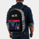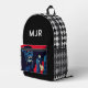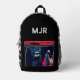 .: Esta mochila tiene un diseño divertido que presenta los colores audaces y primarios en un diseño geométrico de una obra de arte de dominio público. Monograma/ nombre se puede editar de la forma que desee.