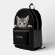 Esta bonita mochila tiene la imagen de un adorable grisáceo grisáceo con mantel que asoma a una pared. El bolsillo de abajo tiene texto en plata. Puedes poner tu nombre en el campo de texto, o quizás pensar en algo gracioso que decir sobre el aprieto del gatito. ¡Depende de ti! También puede cambiar el tipo de letra y el tamaño del texto eligiendo Editar diseño.