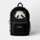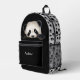 Esta linda mochila tiene la imagen de un adorable oso panda que mira por encima de una pared. Evidentemente, el oso ha caminado por los costados y las cimas, ¡porque hay sus huellas! El bolsillo negro de abajo tiene texto en plata. Puedes poner tu nombre en el campo de texto, o quizás pensar en algo gracioso que decir sobre el aprieto del oso. ¡Depende de ti! También puede cambiar el tipo de letra y el tamaño del texto eligiendo Editar diseño.