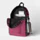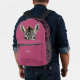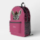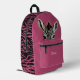 Esta linda mochila tiene la imagen de un adorable asomado a rayas de cebra. Los lados y la parte superior tienen un patrón de rayas de cebra rosa y blanca, mientras que el bolsillo sólido rosa tiene texto en plata. Puedes poner tu nombre en el campo de texto, o quizás pensar en algo gracioso que decir sobre el aprieto de la cebra. ¡Depende de ti!