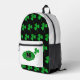 En un fondo negro de moda, este patrón de sacudidas de St Patrick es brillante y brillante. Muy festivo, el bolsillo delantero de esta mochila es blanco y se puede personalizar con el monograma de su propietario. Perfecto accesorio para las más elegantes celebraciones del Día de San Patricio!