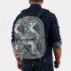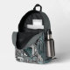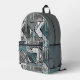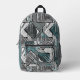 Patrón geométrico gris oscuro y turquesa abstracto con formas y líneas.