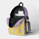 Las mochilas de nombre personalizado Groovy Yellow Purple Modern Floral Pattern presentan un patrón de flores amarillo, púrpura y blanco brillante en un fondo de revisión. Personalizado con tu nombre. Haga un gran regalo para cumpleaños, Navidades, vacaciones, Día de la Madre y de vuelta a la escuela. Perfecto para volver a la escuela, deportes, gimnasia, viajes y más. Diseñado por ©2023 Evco Studio www.zazzle.com/store/evcostudio