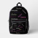 La mochila personalizada se presenta en cualquier color con cualquier color de fuente. Asegúrese de escribir correctamente su nombre o texto en cada cuadro de texto. Compruebe dos veces la ortografía y mire por encima del bolso antes de realizar la desprotección. Diseñado para usted por HAMbyWhiteGlove aka HAMbWG. Mostrado con negro