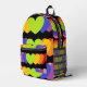 Go back to school in style with this heart print backpack. Cute book bag features multiple hearts in various colors against a black background , with black details. Original digital artwork by Buttercup's Clothing and Collectables.
