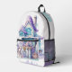 Sorprenda a su hija, nieta, con este hermoso tema de la sirena de hadas, blanco, rosa, verde azulado y morado estético, texto personalizado Mochila, diseñado por PiccoGrande. Cuenta con una caja llena de tesoros, una joven sirena, delante de una mansión, y un gradiente en forma de corazón, escalas de sirena. Modifique o elimine fácilmente cualquier texto predeterminado haciendo clic en el botón Personalizar. Lo mejor para chicas, escolares, preadolescentes, adolescentes para cualquier día o ocasión. #lindo #hermosa #corona #corazón #corazones #caballitos de mar #océano #costa #bajo el agua #hija #cumpleaños #back2school #escuela #shoponline #verde azulada #pink #púrpura #pastel #estética #mejores ofertas #onlinedeal #rubia #mochila #daytrip