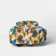 High-contrast, seamless digital camouflage pattern with orange, electric blue and dark brown shapes.