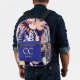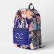 Resumen El patrón de hojas sobre base azul oscuro. Color gris sólido en el bolsillo delantero con personalización "Inicial", "Nombre" y "Texto".