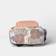 Resumen El patrón de hojas sobre base blanca. Color gris sólido en el bolsillo delantero con personalización "Inicial", "Nombre" y "Texto".
