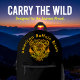 Un ilustracion detallado cuenta con una cabeza de búfalo de bisonte rodeada de montañas, árboles y un río que fluye. El fondo muestra una puesta de sol detrás de los picos, creando un entorno natural y sereno. Capta la esencia de la vida salvaje.