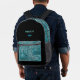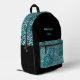 Impresión animal minimalista Mochila impresa de un monograma moderno Diseño a medida en un fondo negro de moda con un ilustracion de remo de bola de picnic para un aspecto profesional y limpio. ¡Puedes reemplazar fácilmente el ilustracion subiendo tu propio logo, imagen o motivo! El nombre de monograma personalizado en la tipografía azul moderna de bloques puede ser reemplazado por su propio nombre o texto personalizado. El bolsillo delantero y los costados están en una huella animal verde azul moda. ¡El regalo o accesorio perfecto!