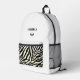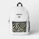 Impresión animal minimalista Mochila impresa moderna en monograma Monograma Mochila impresa Un diseño personalizado sobre un fondo blanco minimalista con un ilustracion de remo de bola de picnic para un aspecto profesional limpio. ¡Puedes reemplazar fácilmente el ilustracion subiendo tu propio logo, imagen o motivo! El nombre de monograma personalizado en la tipografía blanca moderna de bloques puede ser reemplazado por su propio nombre o texto personalizado. El bolsillo delantero está en una huella animal de moda. ¡El regalo o accesorio perfecto!
