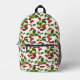 Mochila con una impresión dispersa de cerezas y hojas adaptadas de huellas botánicas vintage - Fuchsia profunda cerezas rosa y borgoña y hojas verdes sobre fondo blanco