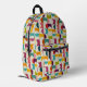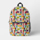 Esta huella geométrica tiene formas de semicírculo coordinadas simples en azul turquesa, amarillo soleado, morado oscuro, verde limón, frambuesa, naranja, rosa y crema. El diseño abstracto tiene un aspecto moderno y fresco. Esta mochila coordina con otros elementos de la colección Palm Springs de Delfuneum.