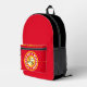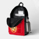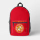 Mochila roja con diseño de círculos concéntricos rojos, blancos, negros y dorados con "GO CHIEFS!!! CIUDAD DE KANSAS, CENTRO MISSOURI DEL UNIVERSO" ¡¡¡HEY BABY!!! SUNNY & RAYRAY BEAM THE SUNSHINE BROTHERS" con una foto de Sunny and RAYRAY BEAM. Este diseño es un grito a Kansas City, sede de Misuri del Superbowl Champions.
