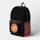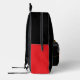 Mochila roja y negra con diseño de círculos concéntricos rojos, blancos, negros y dorados con "GO CHIEFS!!! CIUDAD DE KANSAS, CENTRO MISSOURI DEL UNIVERSO" ¡¡¡HEY BABY!!! SUNNY & RAYRAY BEAM THE SUNSHINE BROTHERS" con una foto de Sunny and RAYRAY BEAM. Este diseño es un grito a Kansas City, sede de Misuri del Superbowl Champions.