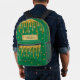 ¡Glitz, Purpurina y Glam! ¡Eso es lo que es esta mochila! Las sonrientes goteas de purpurinas de oro están cayendo en cascada por un fondo verde y hondo. Las gotas de purpurina dorado están por todas partes. Una plantilla de placa dorada está en la parte delantera encima del bolsillo, de modo que puede personalizar la mochila.
