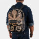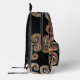 Una imagen detallada del misterioso kraken con detalles ornamentales en oro y negro con patrones giratorios en esta singular mochila, destaca en una multitud con esta parte del profundo mítico. Este diseño fue creado para abrazar el misterio y la mitología del kraken.