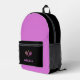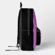 Mochila impresa de lavanda y monograma moderno negro Mochila impresa Un diseño personalizado sobre un fondo morado y negro de lavanda funk de orquídea con un ilustracion de pickleball que puede ser reemplazado fácilmente subiendo su propio logo, imagen o motivo. El nombre de monograma personalizado en la tipografía de bloques modernos de lavanda de funk orquídea puede ser reemplazado por su propio nombre o texto personalizado. ¡El regalo o accesorio perfecto!
