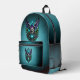 Lechuza con elementos mágicos. El diseño se caracteriza por un impresionante búho estilizado con sus alas extensas, diseñadas en una vibrante paleta de colores morados, azules y blancos. El búho exuda una presencia majestuosa, mientras sus ojos penetrantes amarillos miran directamente al espectador, creando un sentido de intensidad y misterio. Patrones intrincados y giratorios se despliegan alrededor del búho, reminiscentes de los símbolos mágicos, dando a la imagen general un aura mística.