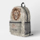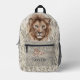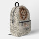 La mochila de león de safari de Guay presenta un león feroz y majestuoso asomándose al pincel. En la bolsa con cremallera delantera hay un león en reposo y un lugar para tu nombre personalizado u otro texto. También tiene la opción de cambiar el tipo de letra y el color del tipo de letra con la función Herramienta de diseño.