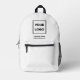 Mira profesional con una mochila de marca mínima con el logotipo de tu empresa, el nombre de la empresa y el sitio web en un fondo blanco. Reemplace el logotipo de ejemplo con el suyo propio y agregue hasta dos líneas de texto personalizado en la barra lateral. Su logotipo puede ser cualquier forma y color. Vea más elementos a los que puede añadir su logotipo en la colección de Artes Rocklawn.