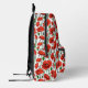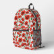 Mochila en un delicado patrón de espías rojas vibrantes con tallos y hojas verdes profundas, en un tiempo de fondo, con, cada amapola florece de manera única curvada y retorcida, como si se balanceara suavemente en la brisa.