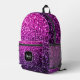 Un purpurina rosado morado rompe la mochila impresa en un monograma. Bolso de accesorios de moda de Guay para ella. Hermosos purpurinas brillantes y glamorosos brillantes brillan el diseño. ¡Foto de destellos, no purpurina real! Crea una mochila única y personalizada con un toque personalizado. Monograma moderno con tu inicial y tu nombre para ese toque personal extra.