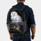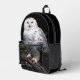 Fotografía de retrato animal de majestuosa búho de nieve parado en una rama.