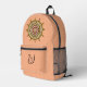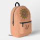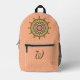 Esta mandala dorada y rosa se inspiró en los medios indios y en los disfraces de anime japonés. Cuenta con capas con pétalos de loto, hojas, paisajes y una rueda ornamental alrededor de todo. Personalizar la primera vez en la bolsa delantera de esta mochila con su propio monograma para hacer este accesorio único suyo.