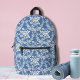 Mochila Impresa Moda botánica del patrón floral blanco azul francé